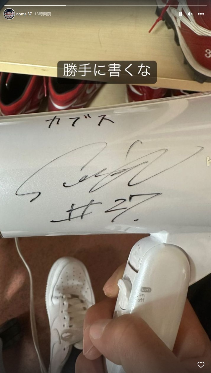 野間ちゃんのドライヤーに誠也ちゃんのサインが。広島にいるんだね。 pic.twitter.com/1LkxAP3Tkf