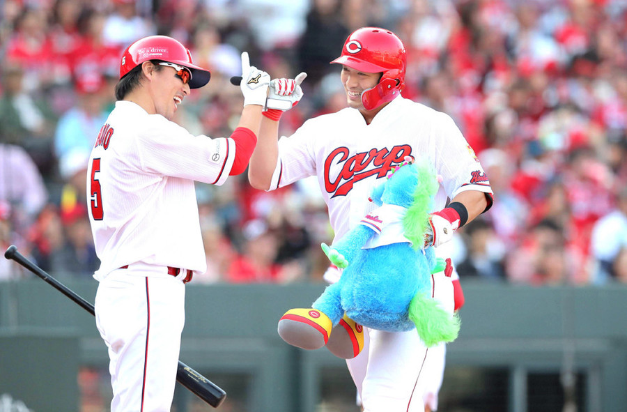 グローブの内側がスイカの果肉の赤、外側が皮の部分のグリーンと黒で彩られた斬新な色彩で、「これからの季節にぴったりなグローブです」とつづられており、試合の時の堂林のグローブにも注目だ。
