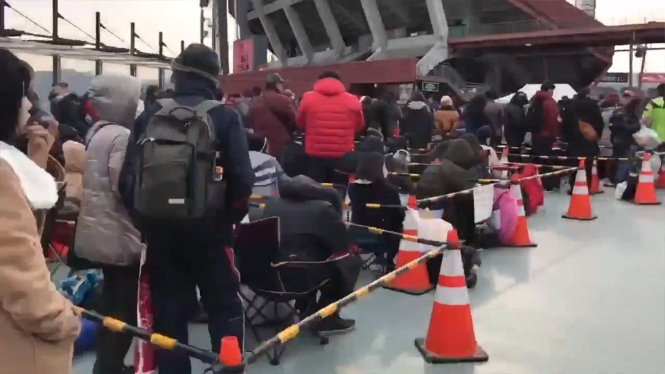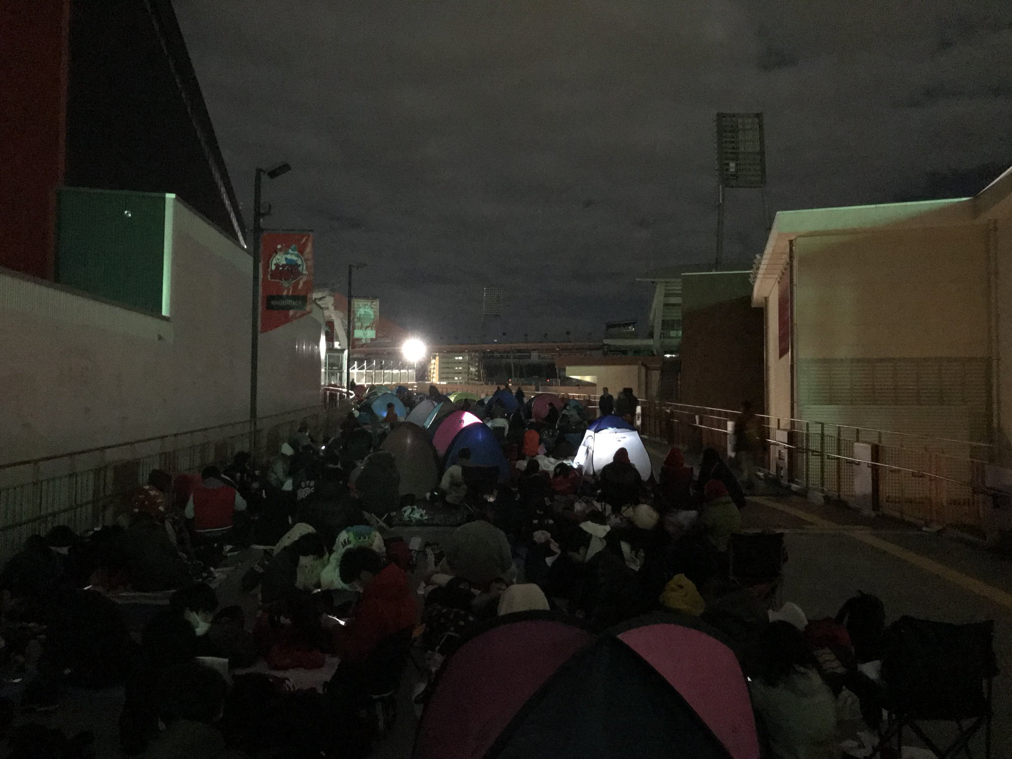 今から、明日のカープファン感の為並びますぅ!!9時間並ぶので、徹夜組です