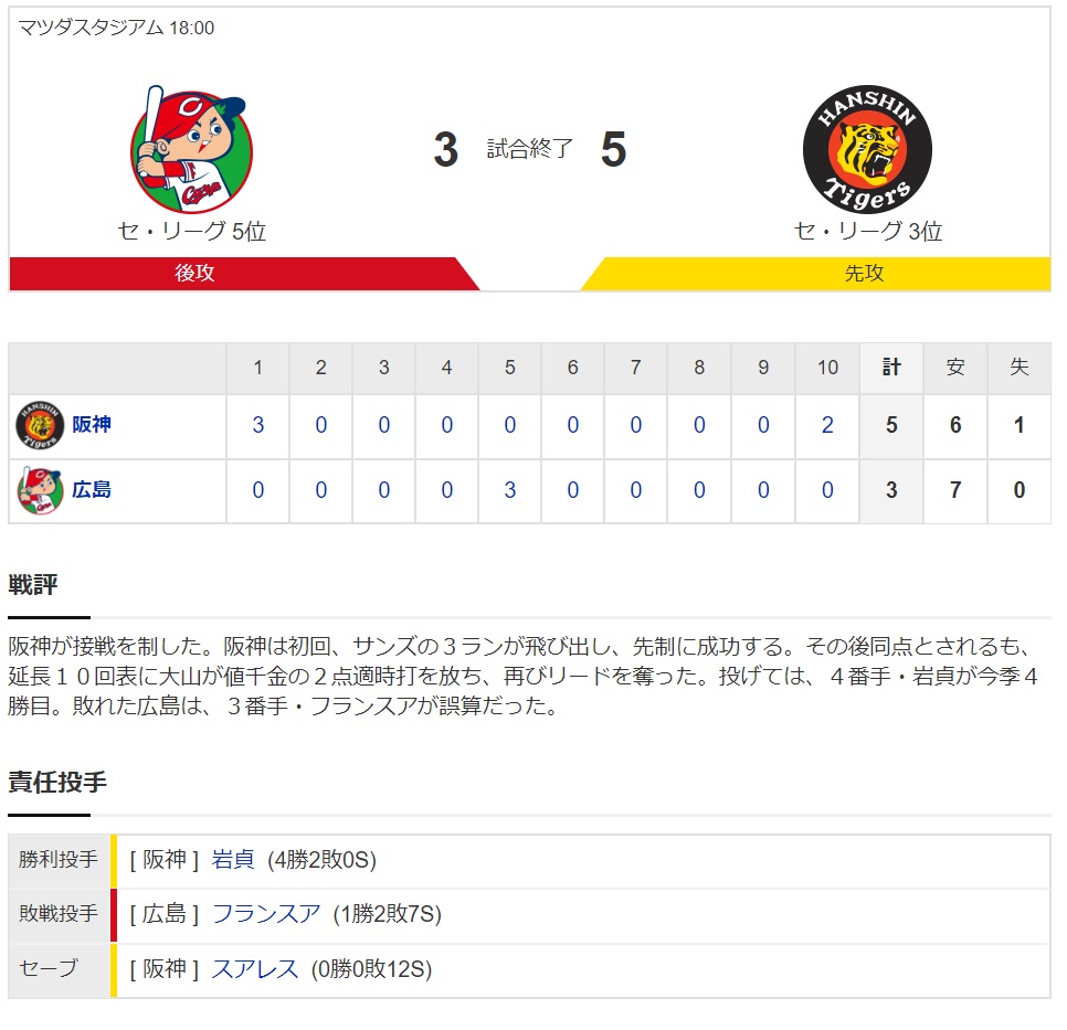 「広島3-5阪神」(30日、マツダスタジアム)