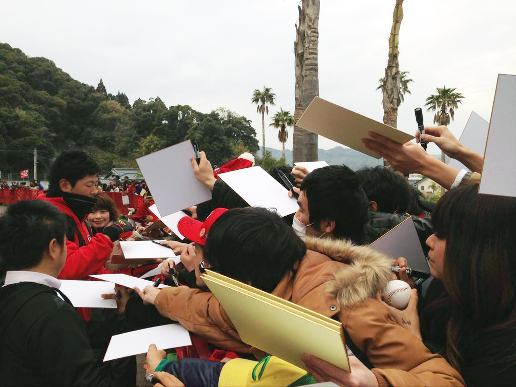 大瀬良サイン攻めにあう。堂林カープ女子に囲まれる【日南キャンプ】