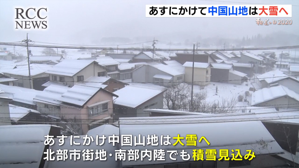 広島県内は、30日夜のはじめころから31日夕方にかけて大雪となる見込みです。気象台は、積雪や路面の凍結による交通障害に注意を呼びかけています。中国地方は強い冬型の気圧配置となり、上空1500メートルには氷点下12℃以下の強い寒気が流れ込む見込みです。30日夕方6時までに予想される雪は県北部の山地で20センチ、南部の平地で2センチ。その後、31日朝(午前6時)までに北部の山地で50センチ、南部の平地で15センチの積雪が予想されています。大雪に備え、30日から山陰方面に向かう高速バスが一部、運休しています。また、JRは、31日、▽芸備線の備後落合駅~三次駅間と、▽福塩線の府中駅~塩町駅間で終日、運転を見合わせる予定です。