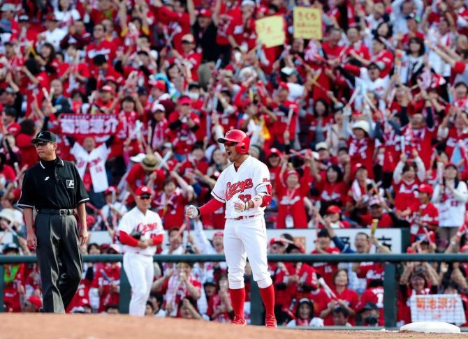 3位浮上のカープに勝利の女神!ホームランガールが「可愛すぎ」と大注目 赤ヘル姿にファンメロメロ「ずっと映して」