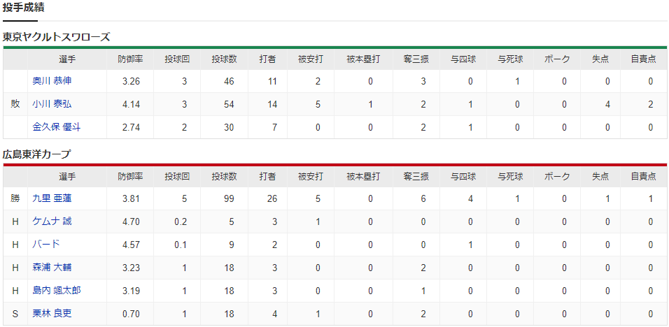 チームでは21年の九里以来、4年ぶりとなる開幕からの3戦3勝を達成。