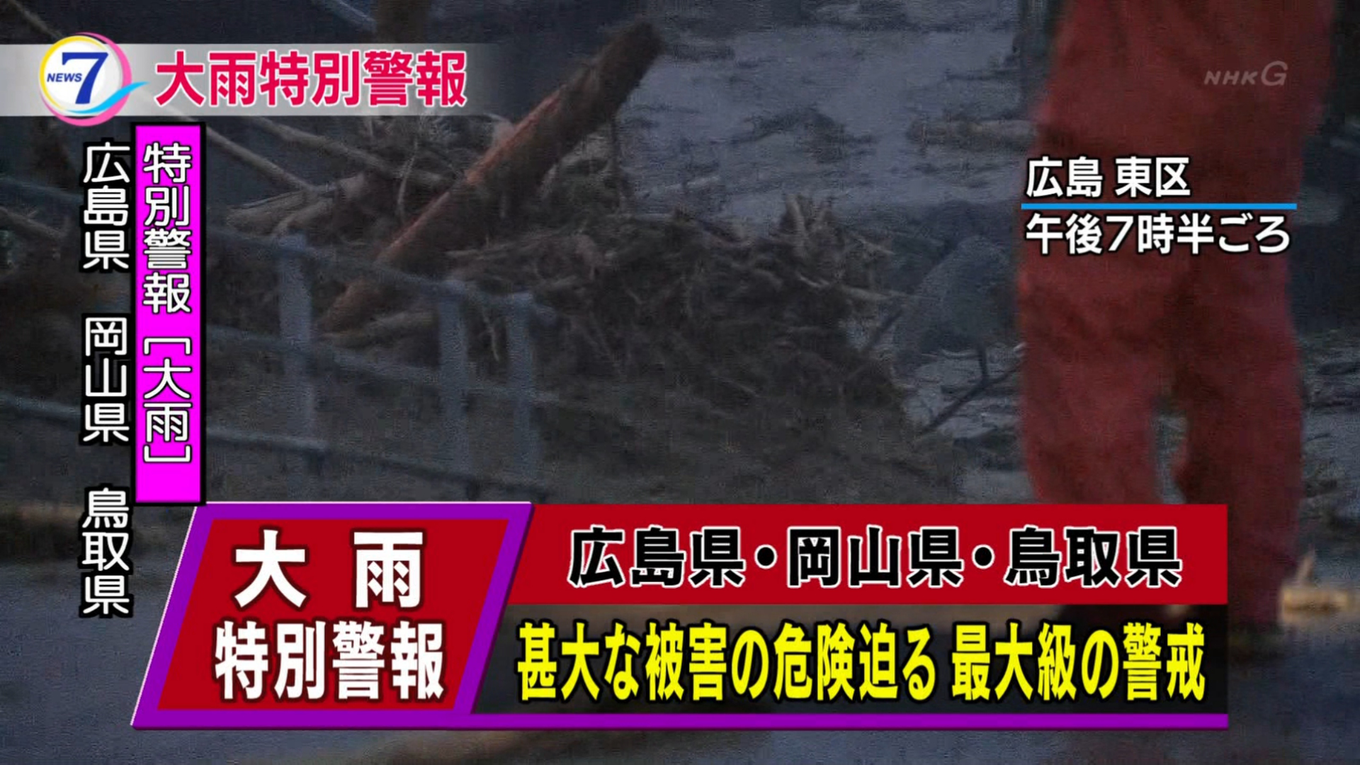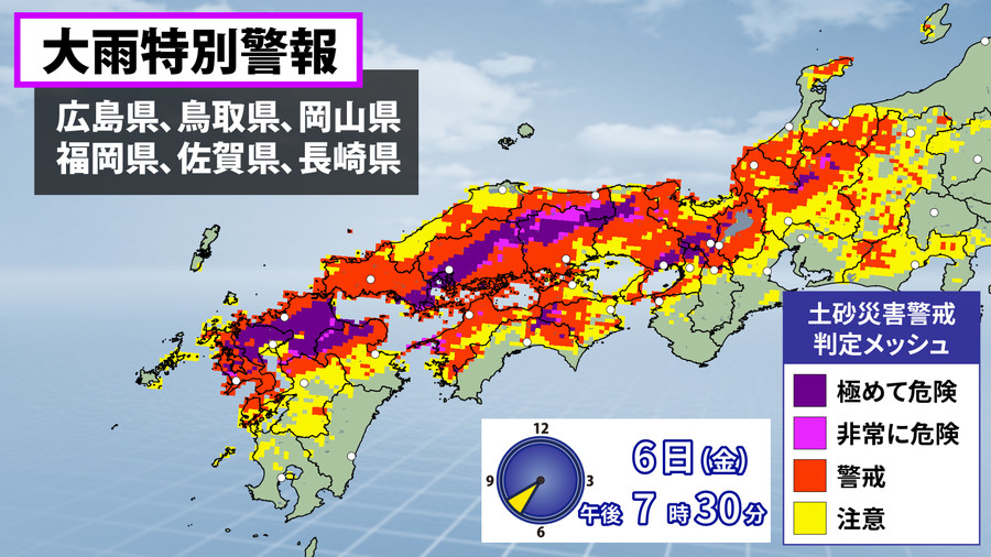 広島・大雨の影響 土砂災害に「最大級」の警戒を県内は5日から激しい雨が断続的に降り続き記録的な大雨となりました。安芸高田市では増水した川に流された男性1人が亡くなり、JRなど交通機関に大幅な乱れが出ています。雨はこの後、7日朝にかけて記録的な大雨になる恐れがあり、自治体から発表される避難勧告などの情報に注意してください。(リンク先に動画あり)