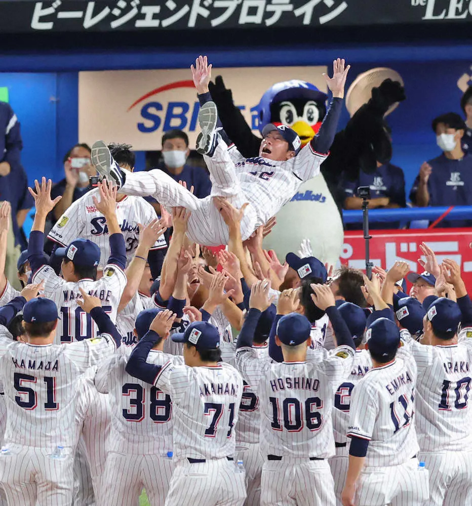高津臣吾監督(52)は就任2年目で初のリーグ制覇。米大リーグでプレーした日本選手として初の優勝監督となった。