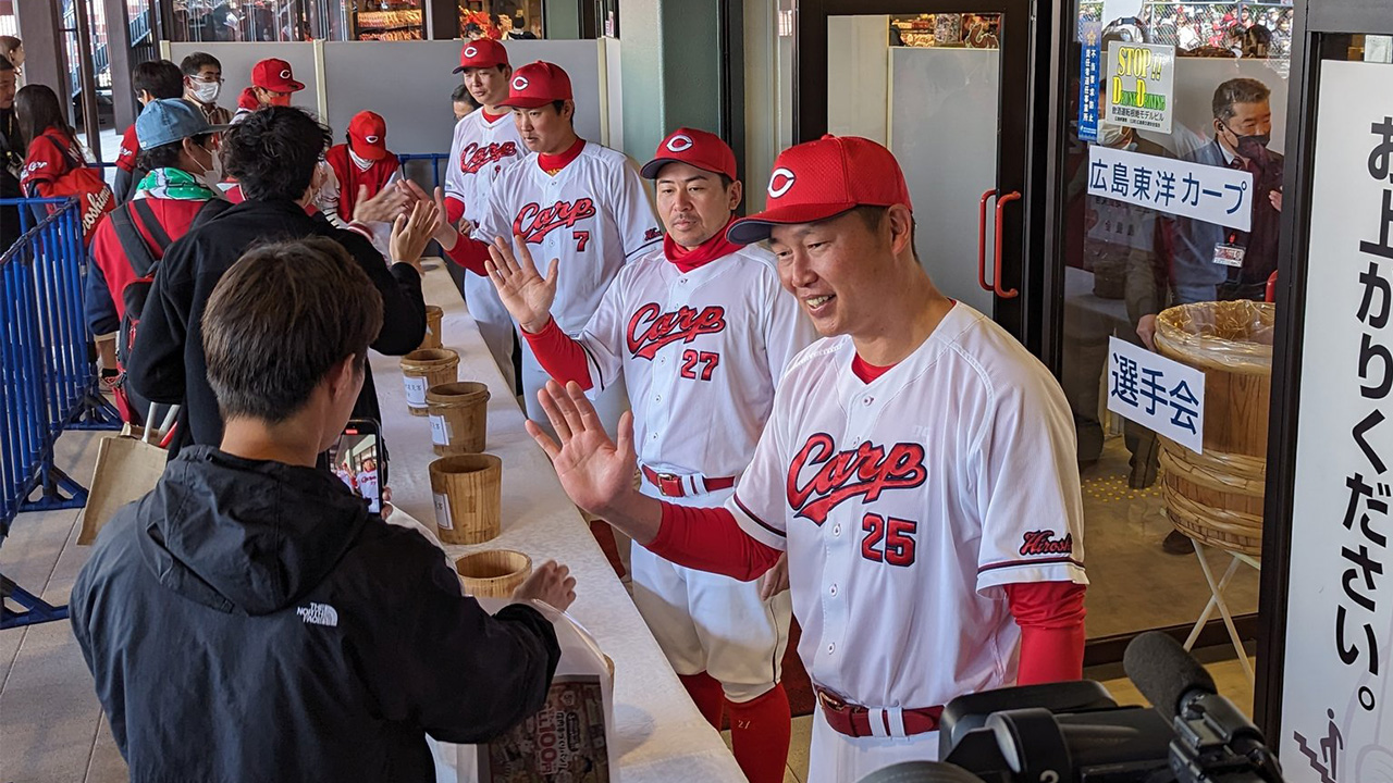 ■広島横浜オープン戦前にカープ選手が能登半島地震の“たる募金”呼びかけ→新井監督&堂林選手会長らがカープファンとハイタッチで交流