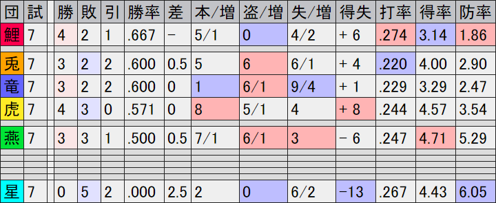 ・まだ始まったばかり、7試合を消化しただけ、ええわかっておりますとも。でも嬉しいんです。首位にもですがチーム打率と防御率が12球団でトップです。たかが7試合ですが嬉しいんです!